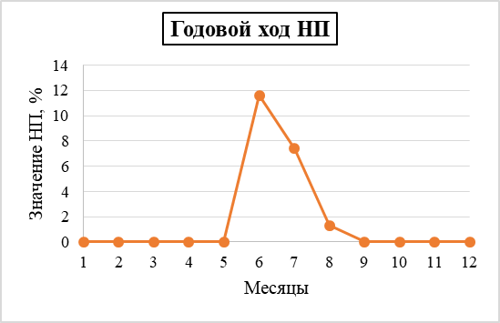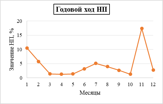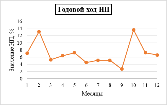 Годовой ход загрязнения атмосферы. В годовом ходе СИ и НП в Перми наиболее высокое значение СИ отмечено для этилбензола в октябре 2025 года и в январе 2026 года – 4,4, самое высокое значение НП отмечено в октябре 2025 года для этилбензола – 13,6%. (Данная информация предствлена графически).