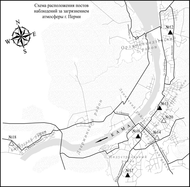 Наблюдения за загрязнением атмосферы. В городе Пермь наблюдения производятся на 7 постах по 25 загрязняющим веществам: взвешенные вещества (пыль), диоксид серы, оксид углерода, диоксид азота, оксид азота, сероводород, фенол, хлорид водорода, фторид водорода, аммиак, формальдегид, бенз(а)пирен, бензол, диметилбензол, метилбензол, этилбензол, тяжелые металлы (хром, свинец, марганец, никель, цинк, медь, железо, кадмий, магний).