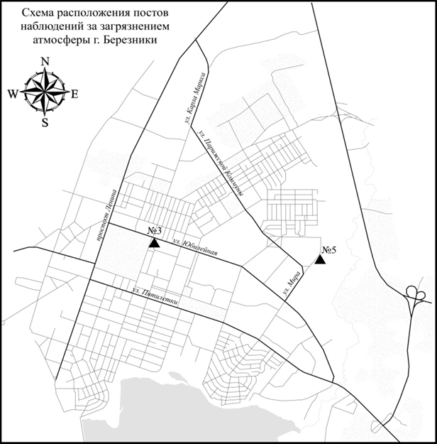 Наблюдения за загрязнением атмосферы. В городе Березники наблюдения производятся на 2 постах по 24 веществам: взвешенные вещества (пыль), диоксид серы, оксид углерода, диоксид азота, оксид азота, сероводород, фенол, хлорид водорода, аммиак, формальдегид, бенз(а)пирен, бензол, ксилолы, толуол, этилбензол, тяжелые металлы( хром, свинец, марганец, никель, цинк, медь, железо, кадмий, магний).