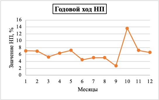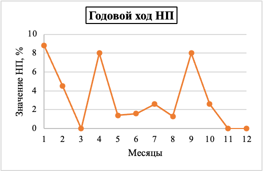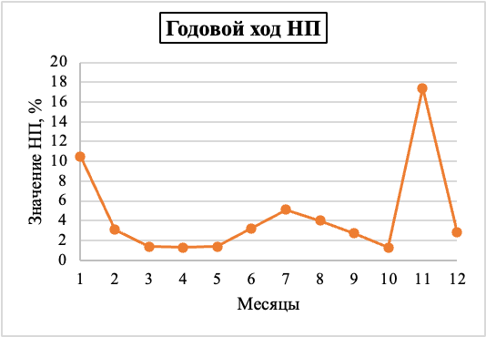Годовой ход загрязнения атмосферы. В годовом ходе СИ и НП в Перми наиболее высокое значение СИ отмечено для этилбензола в октябре 2025 года и в январе 2026 года – 4,4, самое высокое значение НП отмечено в октябре 2025 года для этилбензола – 13,6%. (Данная информация предствлена графически).