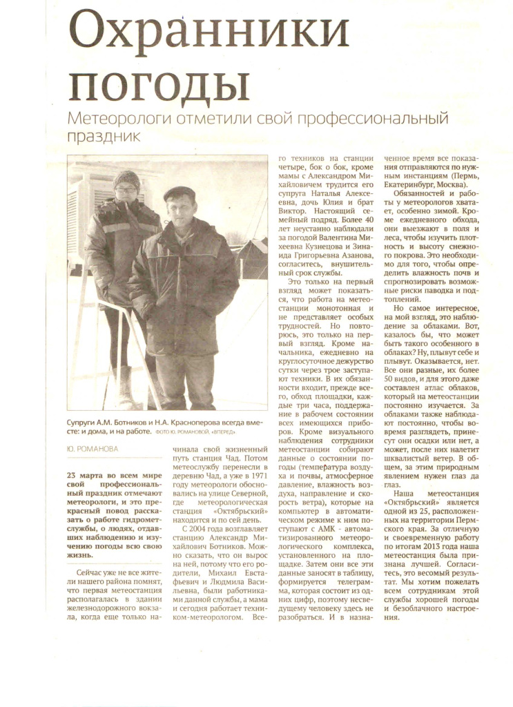 Метеостанция Октябрьский уникальна тем, что уже более полвека здесь работает семейная династия Ботниковых.